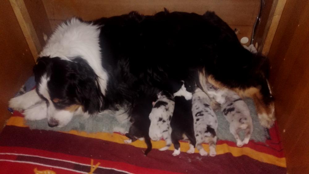 Dne 1.3.2021 přivedla na svět naše Clancy 5 krásných štěňátek. Otcem je mladý a nadějný pejsek Fergus Apeiron.